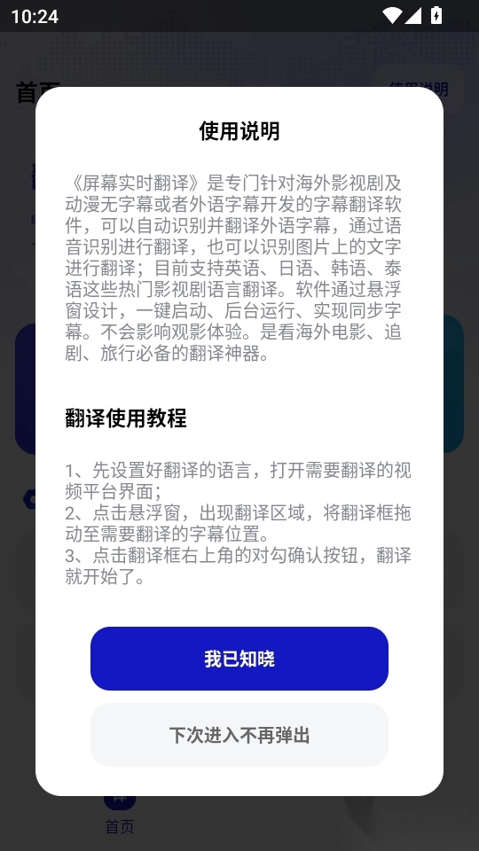 悬浮窗字幕实时翻译,区域翻译、文本翻译,支持多语言随意切换,翻译准,体验好。