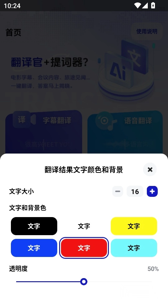 支持用户自定义设置翻译结果的文字大小与背景颜色主题;
