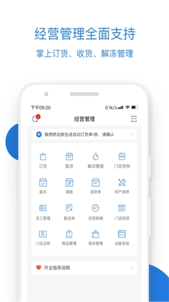 2.经营管理全方位支持:配备掌上订货、收货、盘点、退货、售卖等全流程管理功能,充分满足店铺日常运营的各类需求。
