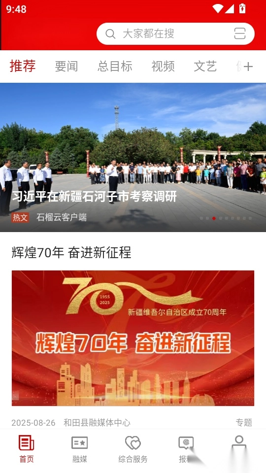专为和田县打造的融媒体移动平台,涵盖新闻、融媒、爆料、服务等多个内容板块。