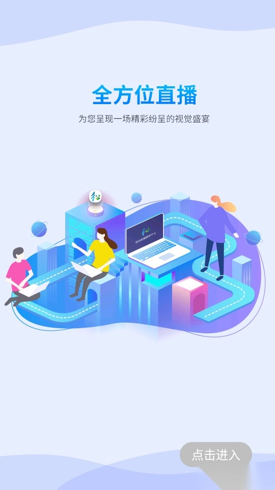 在简单滑动浏览完应用的三步功能介绍后,找到“点击进入”按钮并点击进入程序。