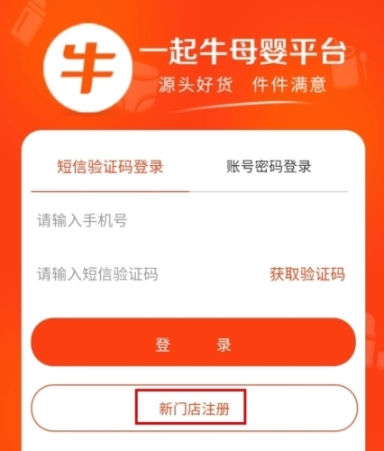 1、启动软件后进入登录界面,已有账号的用户可直接登录,尚未注册的用户需点击新门店注册按钮完成注册。