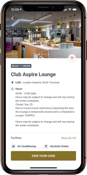 •可搜寻并体验全球超1300间机场贵宾室及各类特色服务,让您提前开启惬意旅程