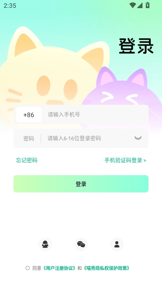 在登录界面填写手机号和密码,之后点击“登录”按钮,即可进入程序。