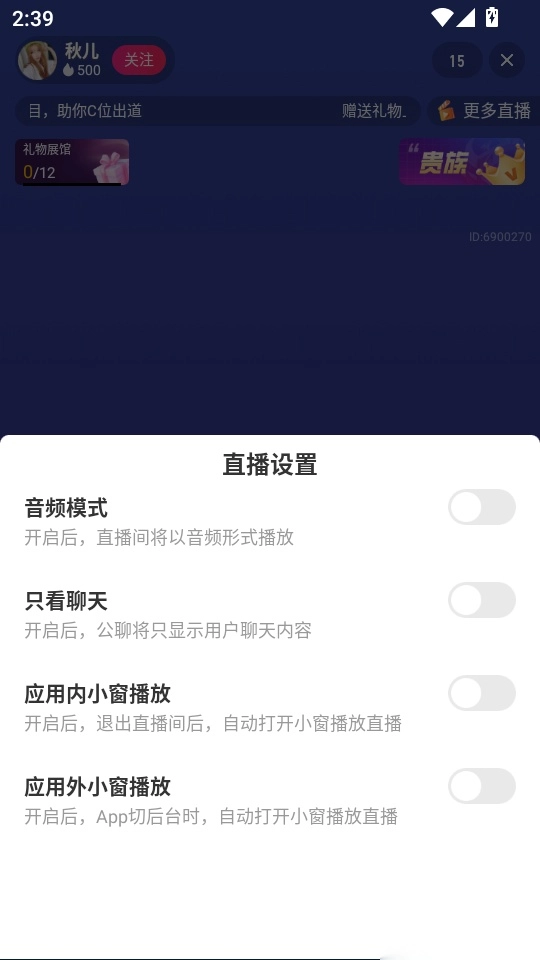接着进入“直播设置”的菜单界面,借助滑动开关的操作就能开启音频模式了。
