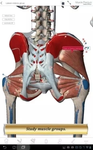 5、您可以移动的肌肉和骨骼模型。学习肌肉动作、骨性标志、附着点、神经支配和血供。