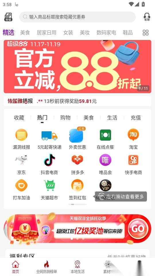 覆盖了全网电商平台的优惠福利,能尽情享受各类商品优惠;