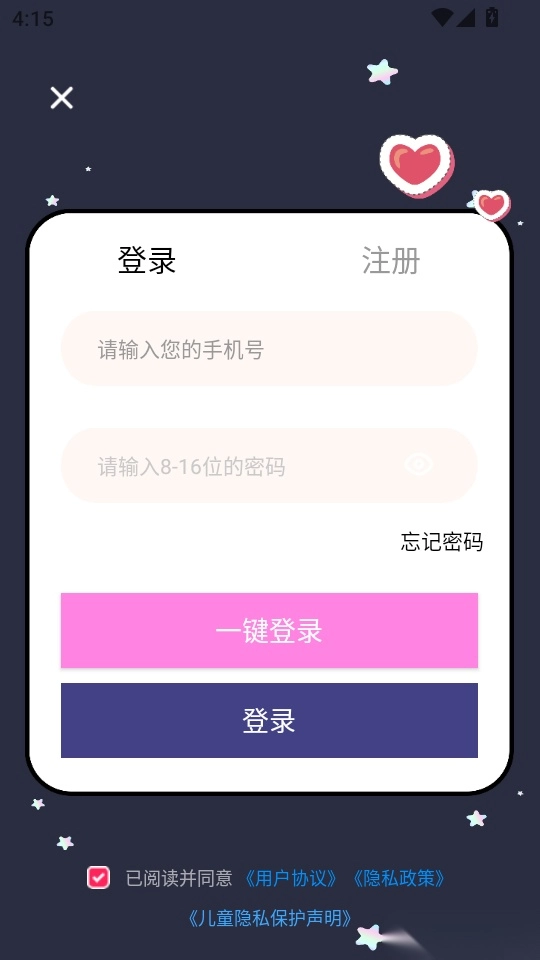 在登录界面输入手机号和密码后,点击“一键登录”按钮即可进入程序