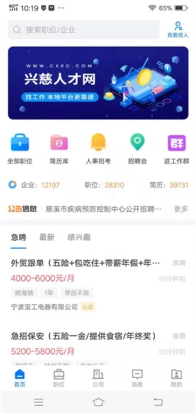 兴慈人才网,是助力您职业发展的可靠伙伴。在海量信息里精准筛选,让求职之路不再彷徨。无论您在哪个地方,都能享受到便捷的求职服务。全面的系统功能,贴心的设计理念,帮您高效找到心仪工作。现在就行动起来,兴慈人才网,为您开启职业生涯的全新旅程!