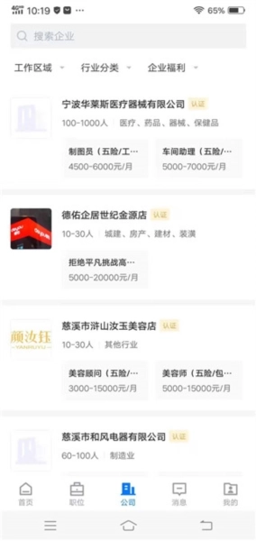 4、在“公司”界面,用户能够查看详细的公司信息,从而有效杜绝虚假招聘情况的发生。