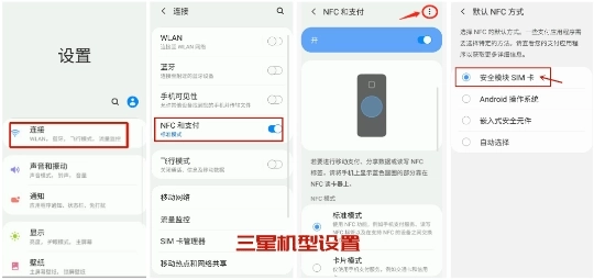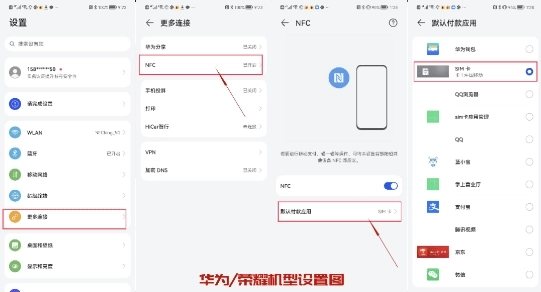 三、NFC默认支付方式需使用SIM卡,下面为大家呈现不同机型的设置截图,各位小伙伴们可要看仔细啦!点击图片就能放大查看哦~