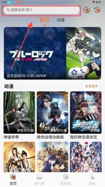 2、点击顶部的搜索框,在其中输入关键词来查找你想看的番剧。