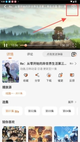 只要确认手机和投屏设备处于同一网络环境,就能把动漫投屏到电视上,尽情体验大屏追番的快乐。