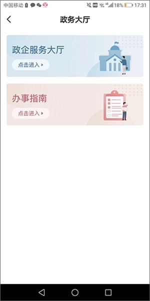 2、首页的全部功能中提供政务大厅功能,可以很好地服务沟通政企