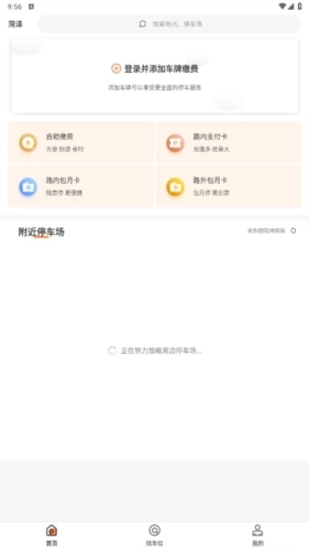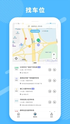 2、成功登录软件后,回到首页进行定位操作,就能查看周边的停车场了。