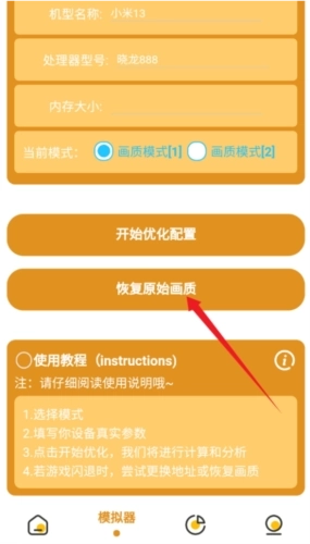 3、如果觉得不符合需求或游戏闪退时,尝试更换地址或恢复画质,可以点击【恢复原始画质】;