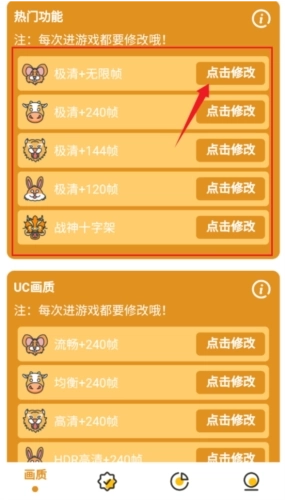 4、此外软件中还支持多种画质模式的一键修改,【点击修改】即可完成。