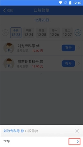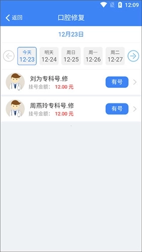 4、比如:口腔修复,如果上面显示有号说明可以挂号,没有号也会显示的。