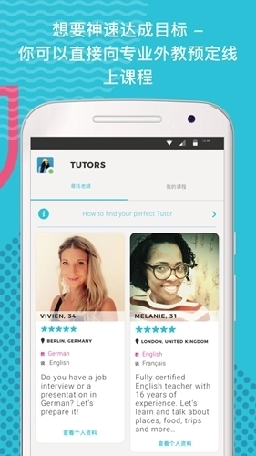 1、创建个人资料:告诉朋友您正在学习的语言和有兴趣的活动或主题,用外语谈论最棒的登山路线、最美的潜水地点或者您家乡的美味。