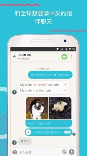 2、视讯交友或笔友都OK:发送信息给外国朋友,熟悉彼此后使用语音或视频通话提升口说及听力技巧。