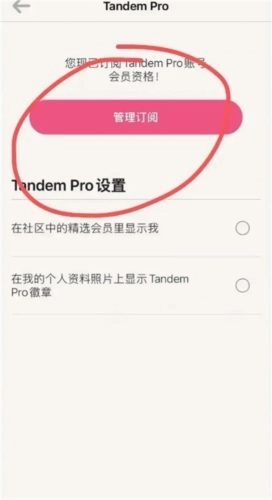 2、由于我们是升级了所以在这显示的是tandemPro,点击管理订阅;