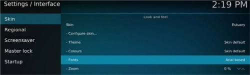 3、然后点击“Skin”在Fonts中选择Arialbased字体。(非常重要!!!否则会乱码)