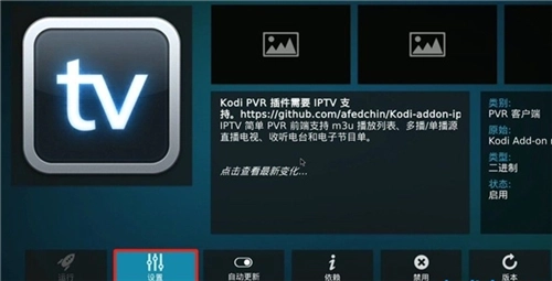 3、点击PVRIPTVSimpleClient下方的“设置”按钮。