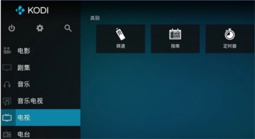 6、回到Kodi首页,选择“电视”-“频道”。