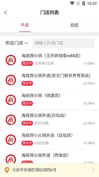 2、选择距离自己比较近的海底捞店铺。