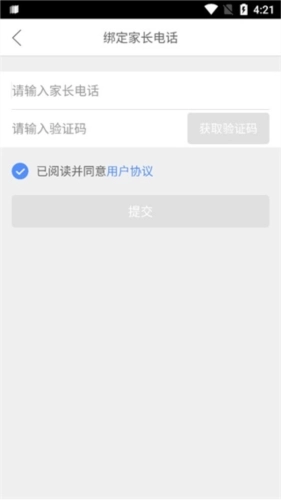 3、然后输入家长的手机号码,获得验证码就可以啦!