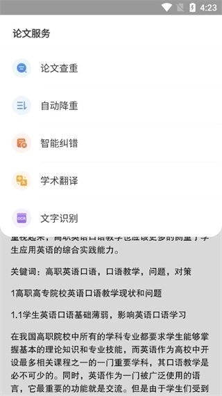 6、用户写作完成后,可使用功能进行论文查重、纠错等功能。