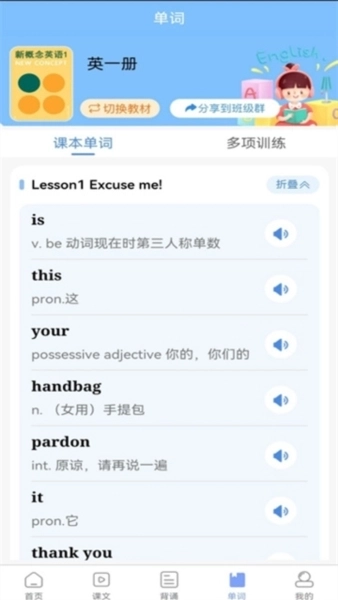 1、在本站该软件并双击打开进入首页,可以对课本进行选择然后进行学习