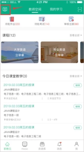 1、登录自己的个人教师账号,点击课程,然后就可以进入到具体的班级