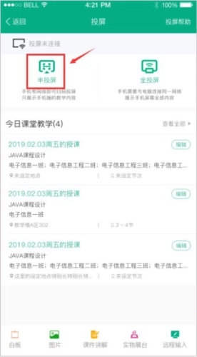 2、半投屏是选择性投屏课件和所有的互动,可以有效的保护教师手机的内容提醒~