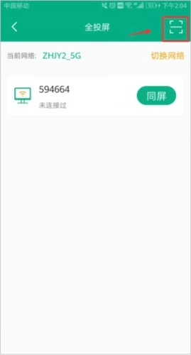 4、点击右上角扫一扫按钮,扫描投屏客户端二维码即可进行全投屏;