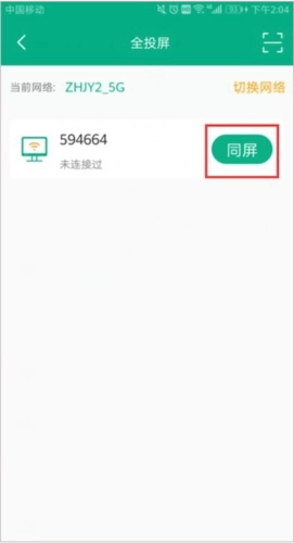 5、或在设备选择页面选择相应的设备,点击右侧【同屏】也可进行全投屏。