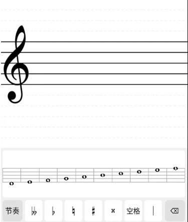 乐理学习模块的设计贴合实际使用习惯:线谱操作采用直接点触对应位置生成谱号、调号、拍号、音符的方式,最大程度还原纸质五线谱的记谱逻辑;节奏输入则考虑到音值组合的灵活性,采用任意组合的设计方案,还能实现符干连断效果的自由切换,满足非规则音值组合的输入需求。