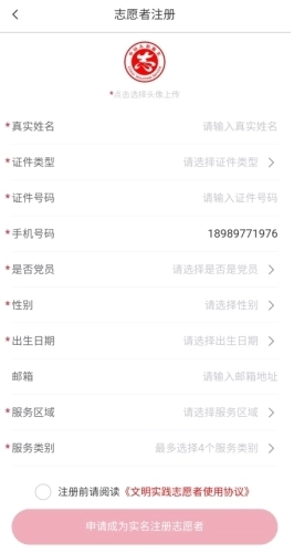 2、在志愿者注册页面填写相关信息,即可申请注册成为志愿者。