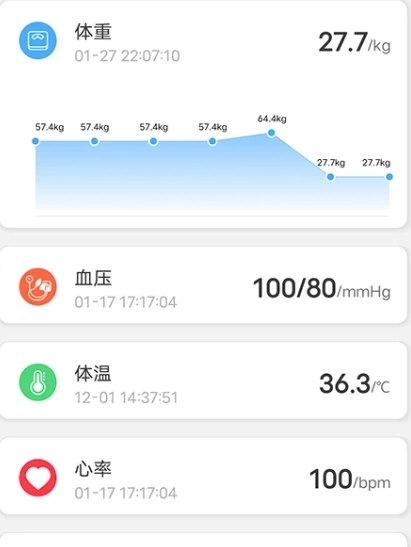 3、测量数据:云存储功能支持用户随时查看测量数据,即便删除智能硬件端的测量数据,相关数据也不会丢失。