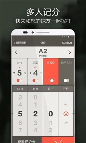 •卡片记分:记分卡式记分,便捷记录每洞总杆、推杆、罚杆信息,快速分析开球命中率,上果岭率;