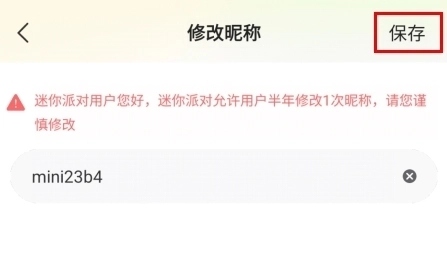 2、在修改昵称页面中修改昵称,半年才可以修改一次,点击右上角的保存按钮。