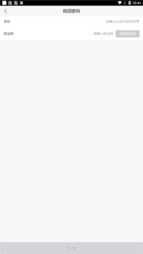 3、点击页面右上角的“注册”按钮,接着按照页面给出的提示输入用于注册的手机号,之后点击“下一步”按钮。