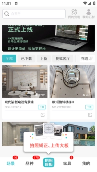 用户可以直接搜索查找自己想要了解的石材效果图,进而获取这些石材效果图来使用。