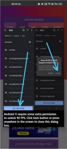 a.单击将重定向到文件夹的解锁90FPS按钮