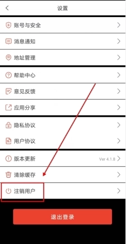 2、在下方可以看到【注销用户】的选项,点击即可开始操作。