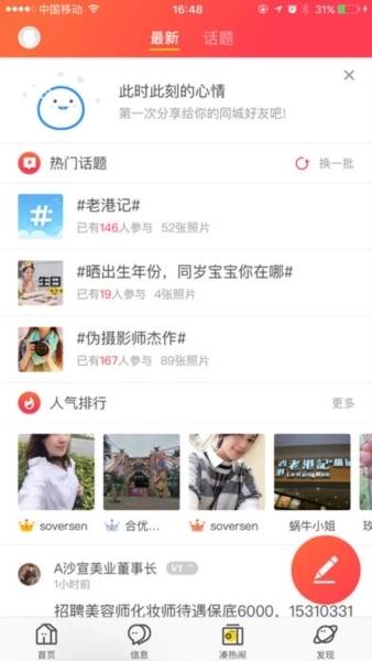 合川人都在玩的本地专属社交圈,发动态、吐吐槽、晒自拍,欢乐分享停不下来!