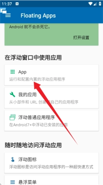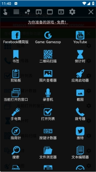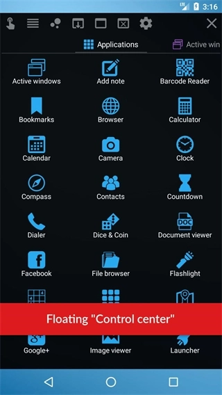 2、可移动且可调整大小的浮动图标,能一键访问浮动应用程序,该图标始终位于其他应用程序之上。