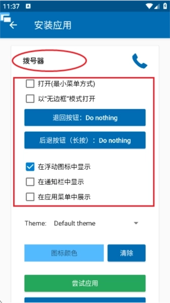 3、例如拨号器。进入到如图所示界面,勾选上一些需要显示的效果样式。