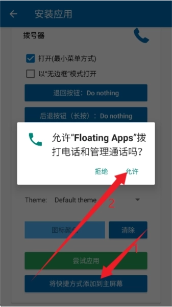 4、然后点击底部的【将快捷方式添加到主屏幕】然后授予软件部分权限,如图所示。