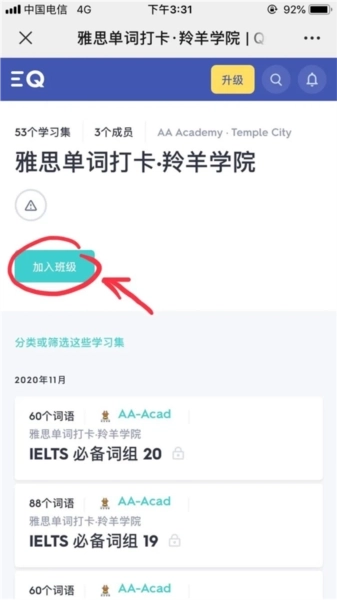 5、"加入班级"的按钮消息后,表明您已成功加入了单词打卡班。